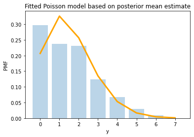 poisFit = sps.poisson.pmf(yGrid, mu = postMean)